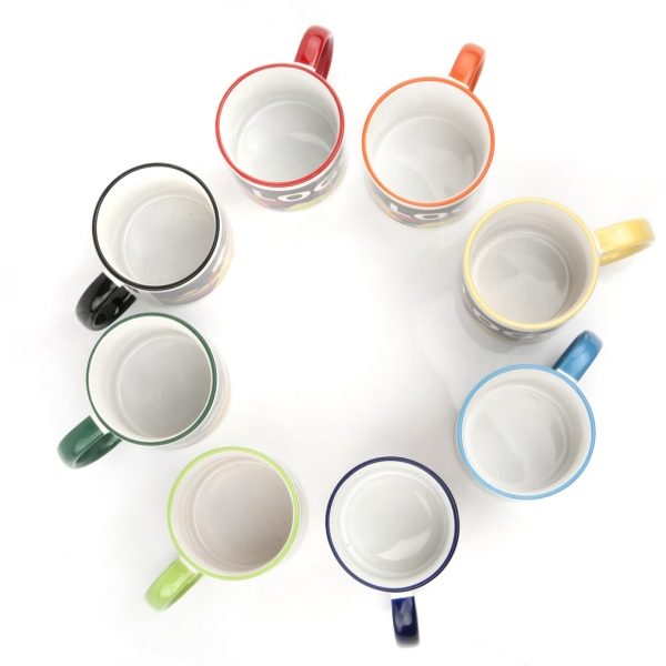 Klassisch bedeutet nicht langweilig. Buntes Ohr und Umhüllung verursachen es, dass dieser einfache Porzellanbecher bekommt ein fabelhaftes Aussehen. Vollfarbige Thermobeschriftung die gewöhnlich drumherum untergebracht wird, ergänzt diese außergewöhnliche Stilistik und somit macht den Athena – Becher zu einem originellen und unvergesslichen Werbegeschenk. Die hier verwendete Beschriftungstechnik ermöglicht die photographische Grafikwiedergabe in allen von dem Kunden erwünschten Farben, was zweifellos die Popularität dieses Bechers besonders erhöht. Der Vorteil der Thermobeschriftung ist auch die hohe Beständigkeit gegen alle Beschädigungen (Abwischen, Abrieb) weswegen dieser Becher den Benutzer viele Jahre lang dienen wird.