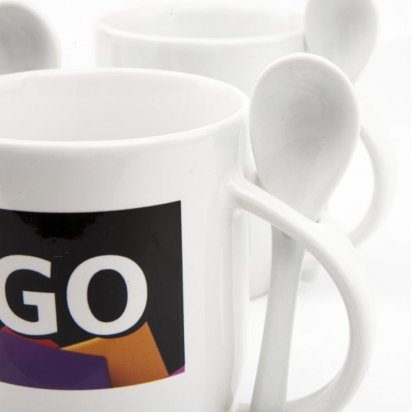 Eine ideale Lösung für alle die immer ein Problem mit einem Löffel der immer irgendwohin verloren geht, haben. Der Full Color Spoon – Werbebecher ist nämlich mit keramischen Löffel und einen Griff für ihn ausgestattet. Der Löffel wird also ab jetzt immer griffbereit sein und wir werden ihn nicht auf dem Schreibtisch suchen müssen.